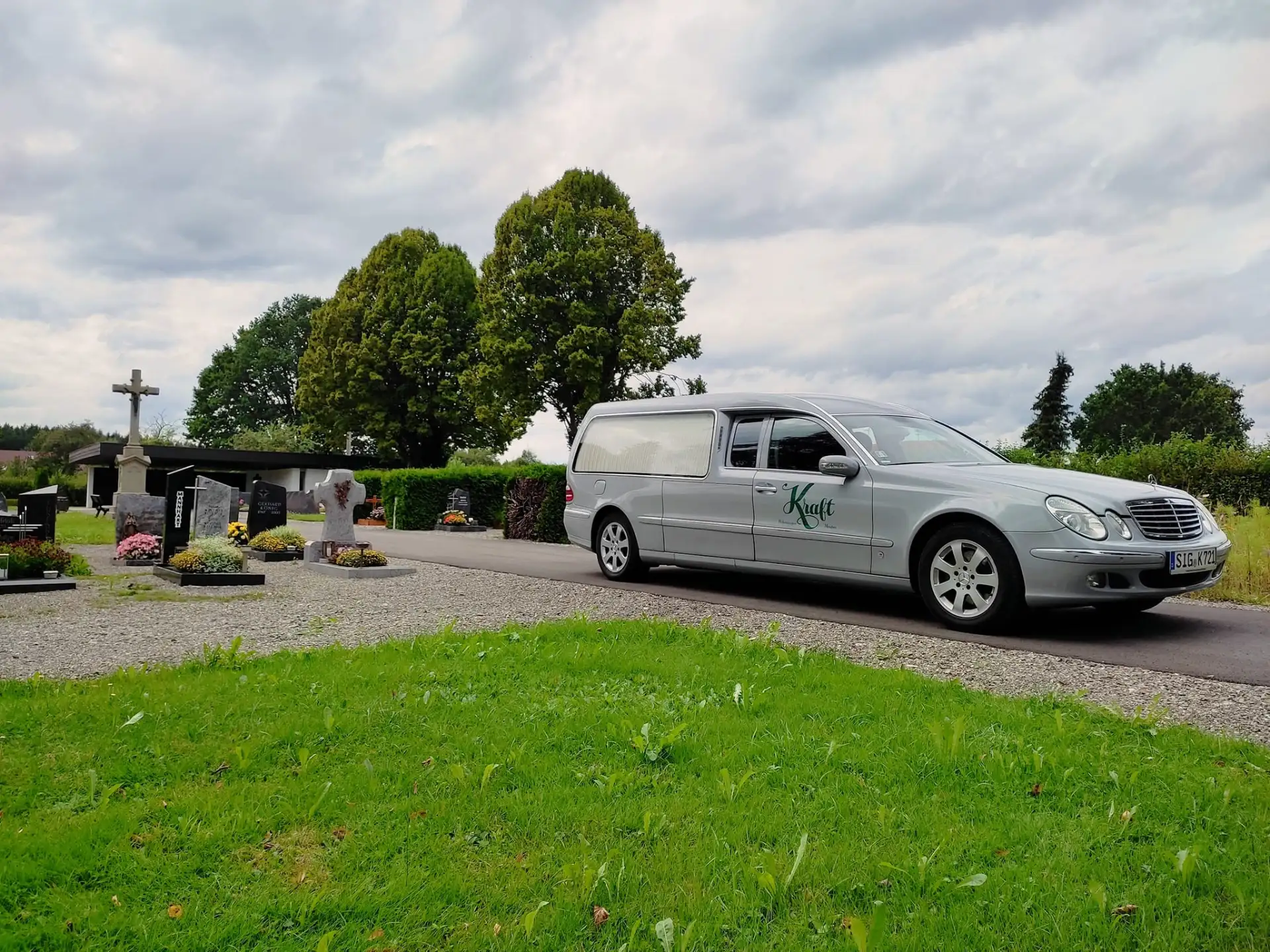 Die Mercedes-Benz E-Klasse stammt aus Stuttgart, der Sonderumbau zum Bestattungswagen übernahm in unserem Fall das langjährige Karosseriebauunternehmen Rappold in Wülfrath in Nordrhein-Westfahlen.